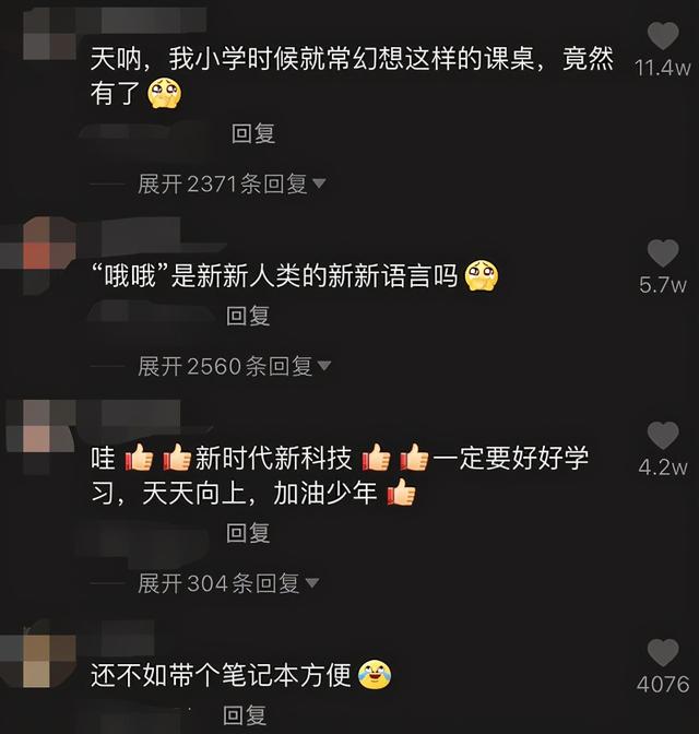此事上传到网上后,也引发了网友们的热议。有网友表示他小时候也常常幻想拥有这样神奇的课桌,没想到现在竟然真的有了。还有网友表示,现在是新时代新科技,所以同学们一定要好好学习。此外也有网友认为,这样的操作还不如带个笔记本,可能更方便。正如网友所说,科技改变了我们的生活,我们更要奋发图强。