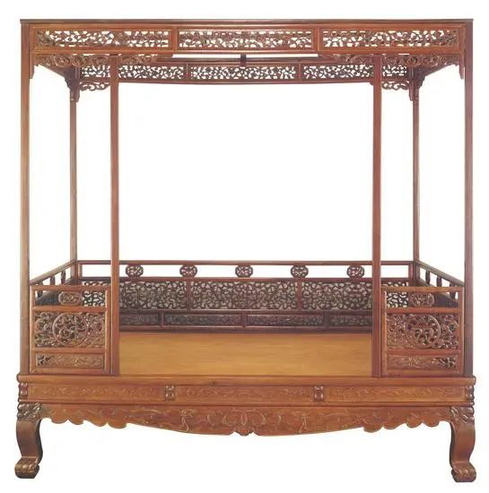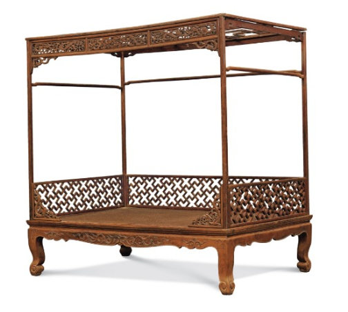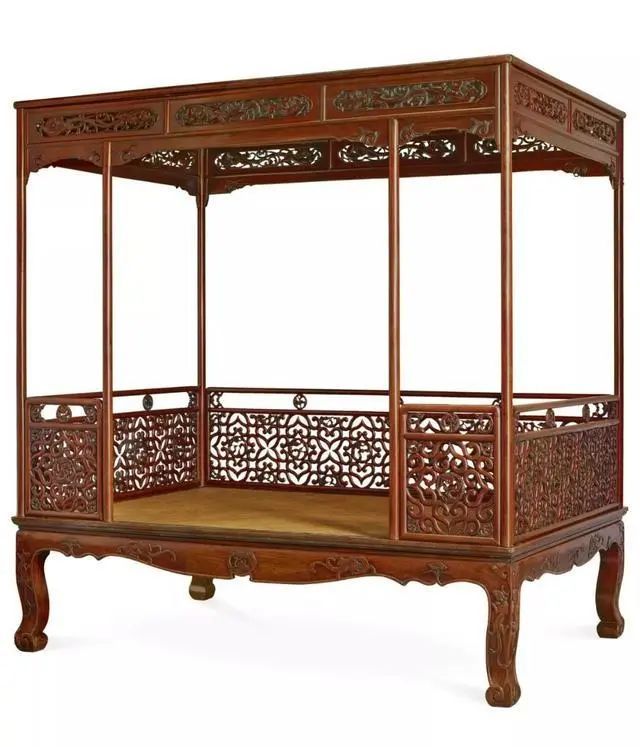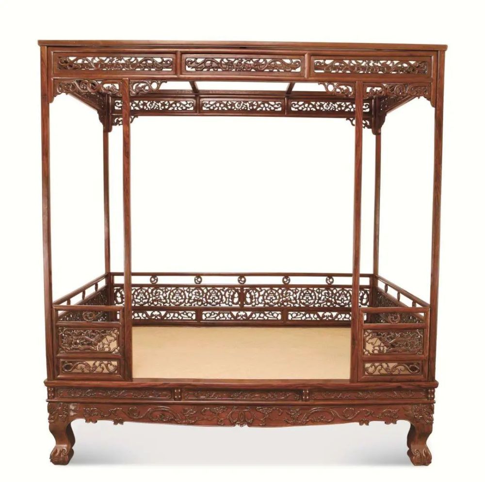 清早期 黄花梨架子床(三弯腿床围透雕式)