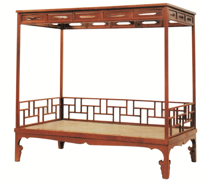 清早期·黄花梨架子床(三弯腿床围透雕式)