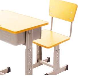 这款课桌的桌面主材大多以多层板、刨花板和中纤板为主。外围使用注塑包边一次成型,无接缝,书斗有钢制和pp两种材质,桌腿和凳腿都是由冷轧钢板压制而成,常规厚度0.8~1.5mm不等,桌子可升降高度从460mm~750mm。这种款式的课桌之所以一直未被市场所淘汰其主要原因就是,经济实惠,而且非常的耐用是一款性价比超高的系列产品。